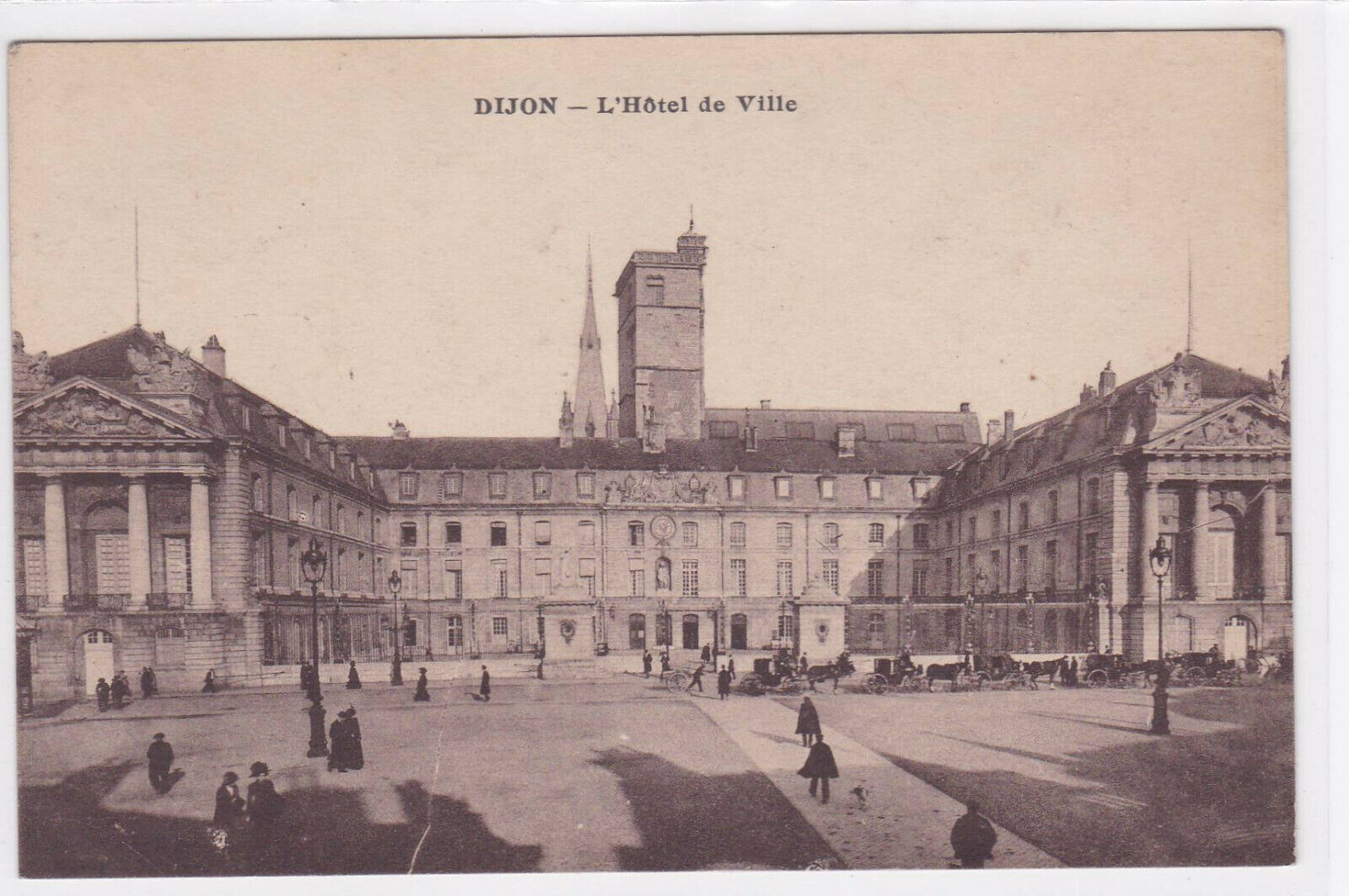 OLD POSTCARD CPA DIJON TOWN HALL ADVERTISING PARIZOT MUSTARD