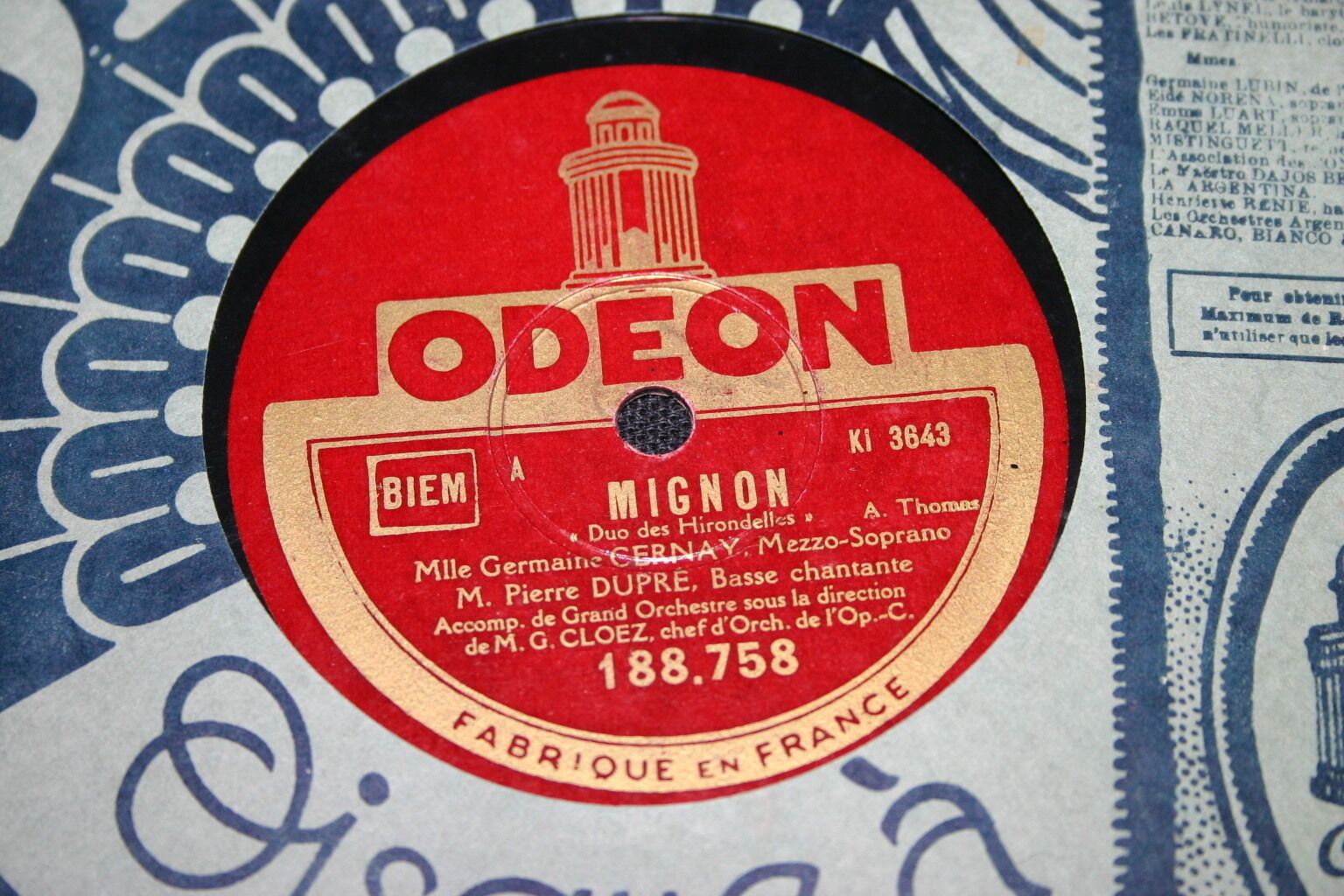 GERMAINE CERNAY / PIERRE DUPRE 78T MIGNON