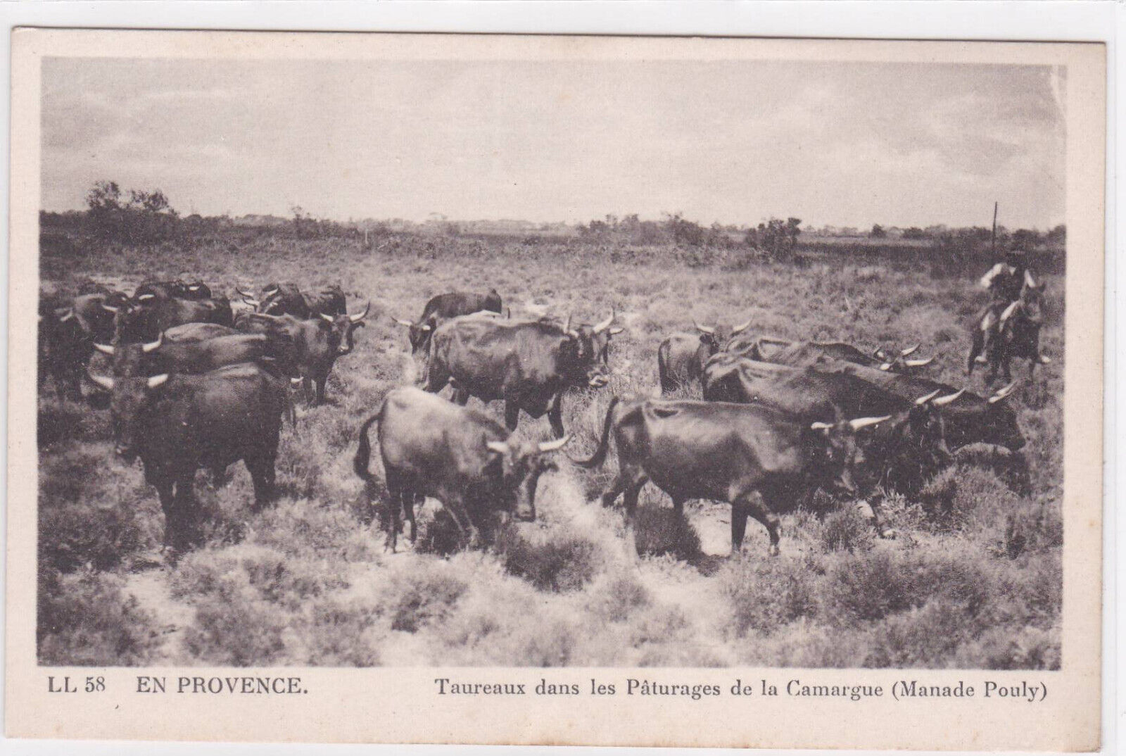 CARTE POSTALE ANCIENNE CPA EN PROVENCE TAUREAUX DANS LES PATURAGES CAMARGUE
