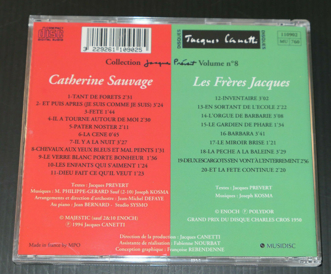 CD CATHERINE SAUVAGE LES FRERES JACQUES / COLLECTION JACQUES PREVERT / CANETTI