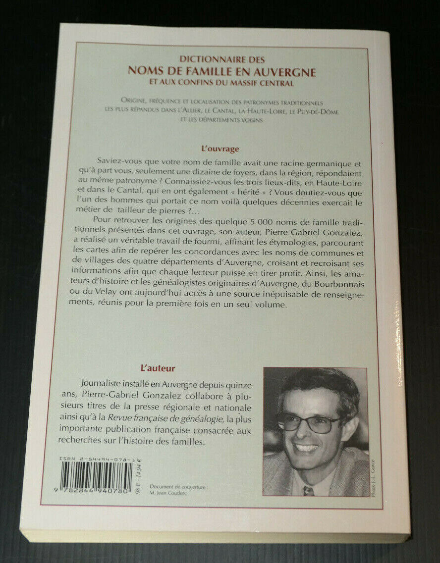 DICTIONNAIRE DES NOMS DE FAMILLE EN AUVERGNE / DE BOREE 2001 / GENEALOGIE