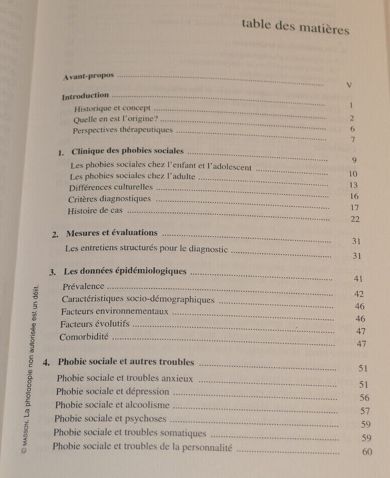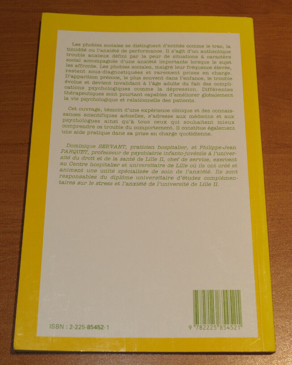 LES PHOBIES SOCIALES / SERVANT PARQUET / MASSON MEDECINE PSYCHOTHERAPIE 1997