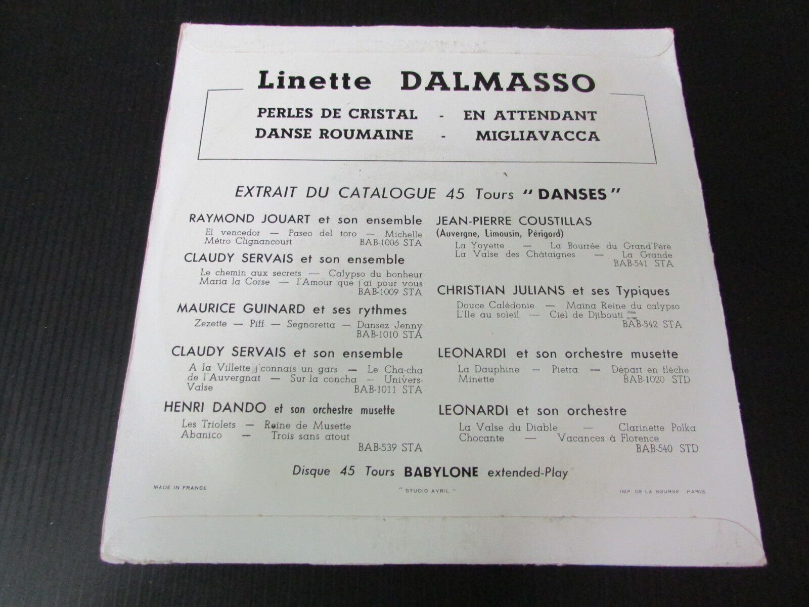 LINETTE DALMASSO EP 45T 7" PERLES DE CRISTAL BABYLONE BAB 544 STA