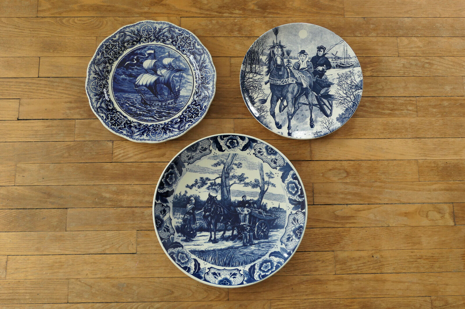 LOT DE TROIS GRANDES ASSIETTES DECORATIVES EN FAIENCE DE DELFT