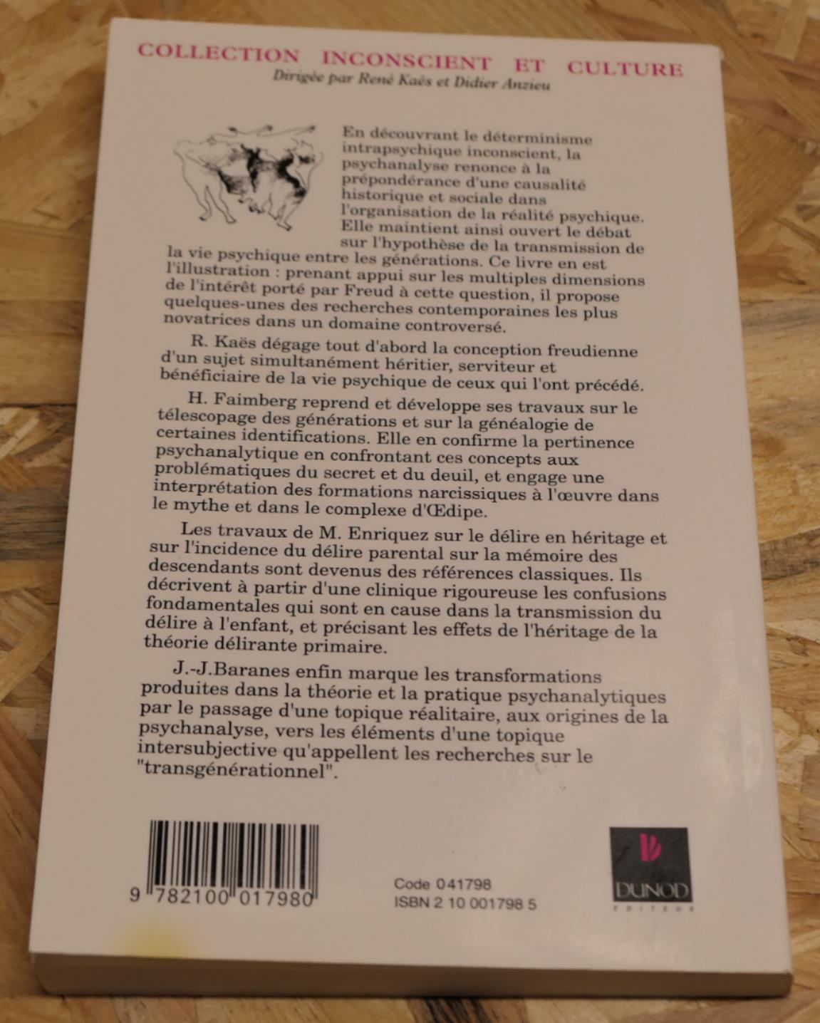 Transmission De La Vie Psychique Entre Générations - Collectif - Dunod 1993