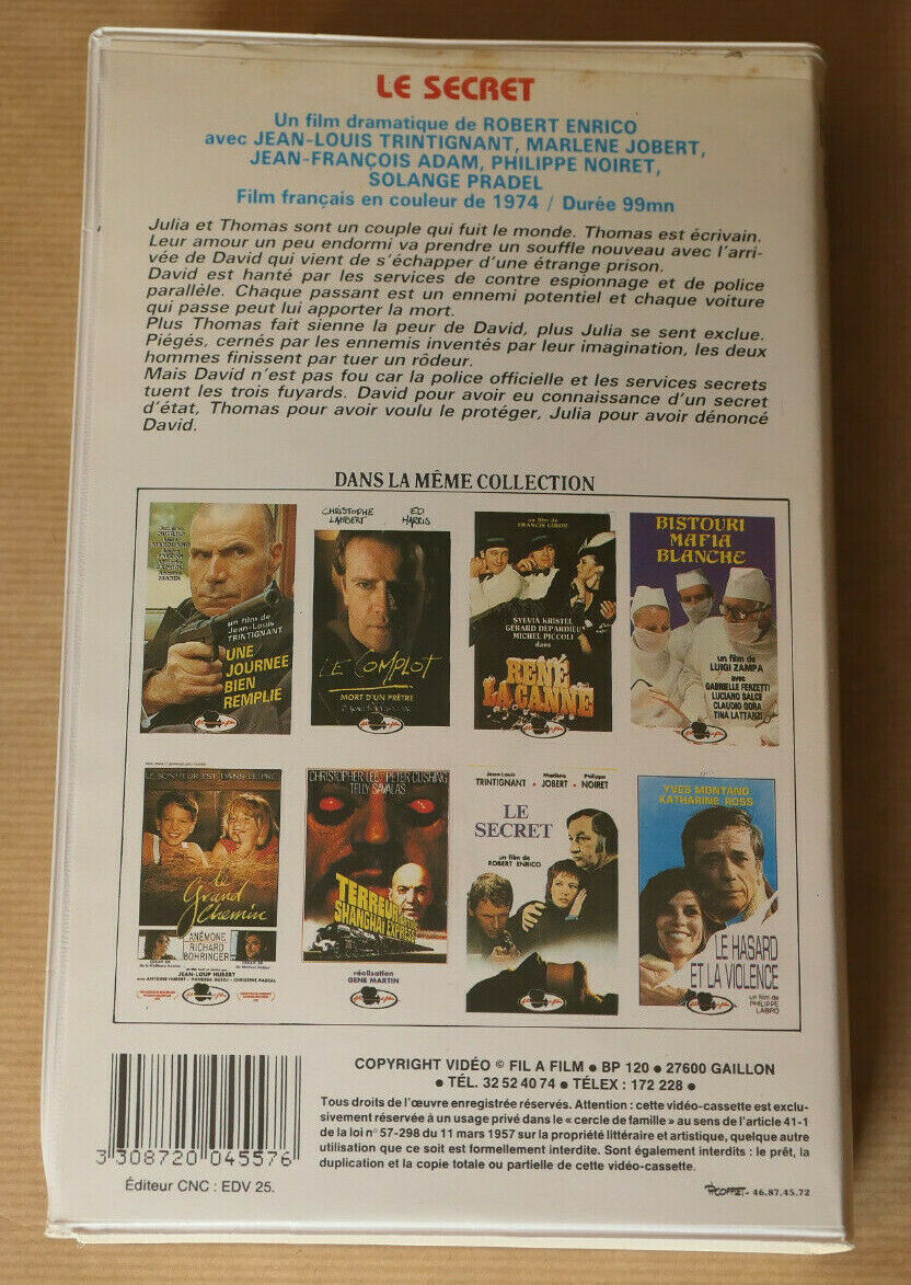 VHS CASSETTE VIDEO LE SECRET ROBERT ENRICO TRINTIGNANT JOBERT NOIRET 1974